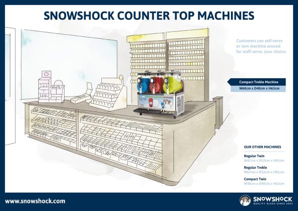 Snowshock’s Compact Treble Slush Machine has 3 x 6 litre tanks & high performance freeze capacity.