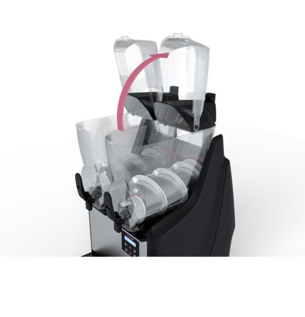 Vertical air flow allows machines to be installed side by side without leaving any space for ventilation, minimum space and maximum performance, the advanced air flow system means air draws from underneath and exits through the top rear grilles. The Expert reduces operation time and is the best slush production designed for you, event programmable and electronic control makes profit from slush made even easier.