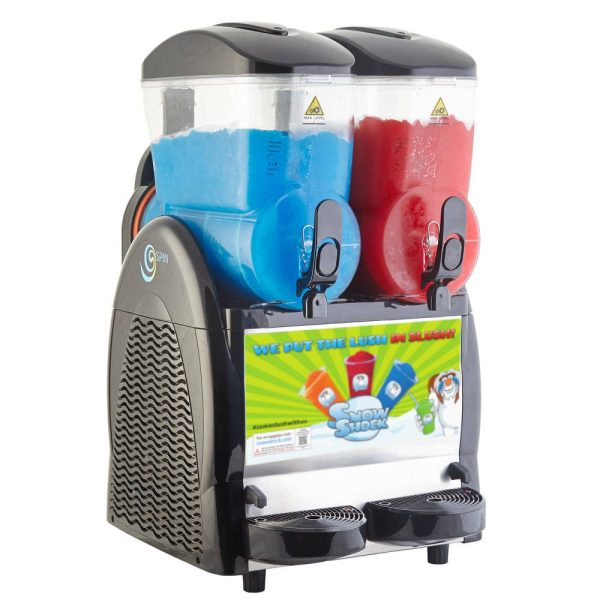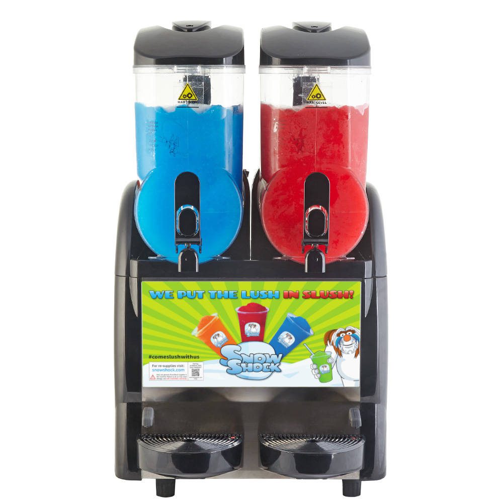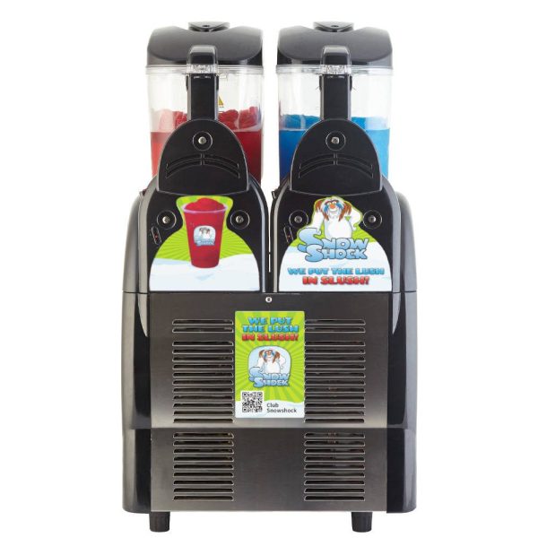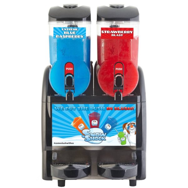 Snowshock’s best seller! Our regular double slush machine has two x 12-litre tanks.