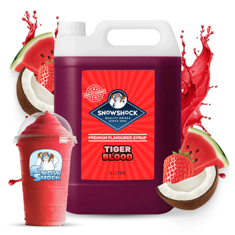 The US number one best seller, now available in the UK by Snowshock. Tiger Blood Slush Syrup provides excellent value alongside maximum taste and colour. This new favourite blends the perfect thirst quenching, mouth-watering, fresh strawberry, watermelon and coconut flavours to perfection. Designed to broaden it’s appeal to a wider range of age groups, everyone will be reaching for this great slush drink. Each 5-litre bottle can make 110 regular 300ml Slush drinks, delivering immediate profits.