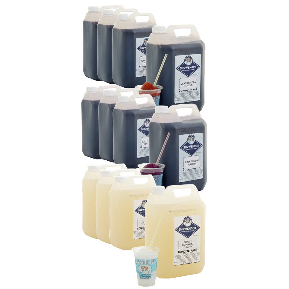 Our Top 3 Classic slush flavours in a bundle to save you money. You get 4 x 5 ltr bottles of each LEMON & LIME, CLASSIC COLA & LEMONADE