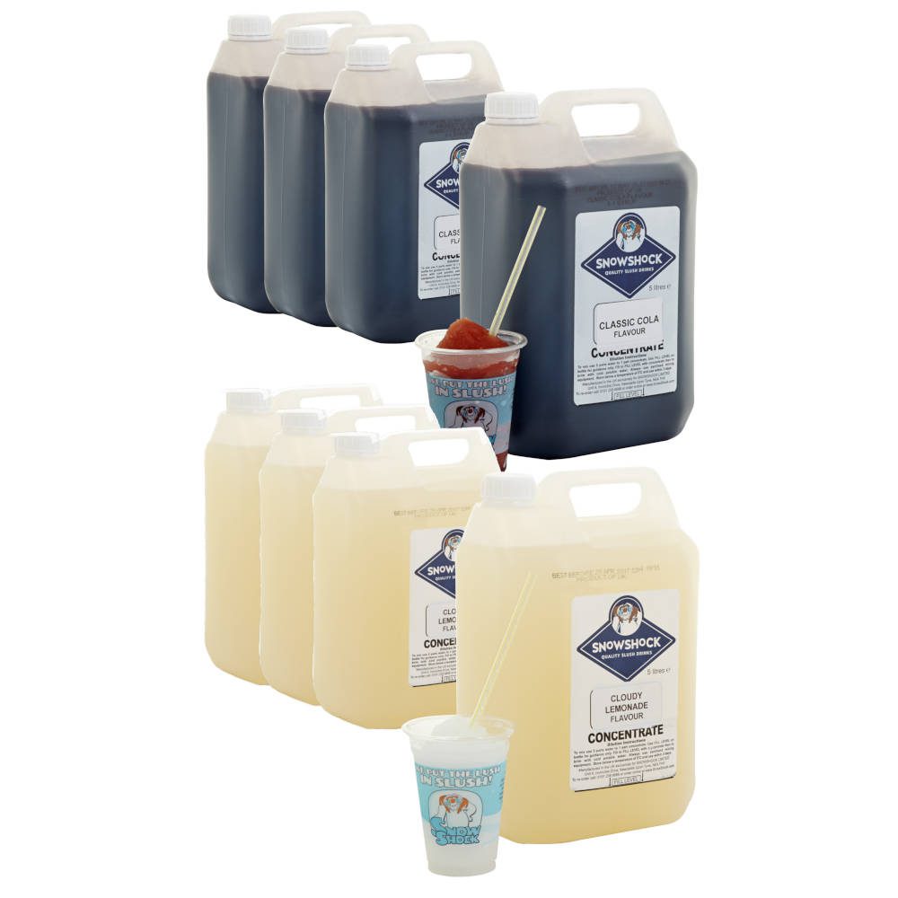 Our Top 2 Classic slush flavours in a bundle to save you money. You get 4 x 5 ltr bottles of each CLASSIC COLA & LEMONADE.